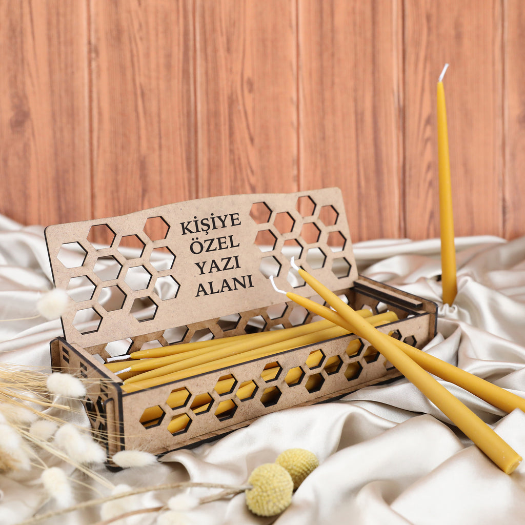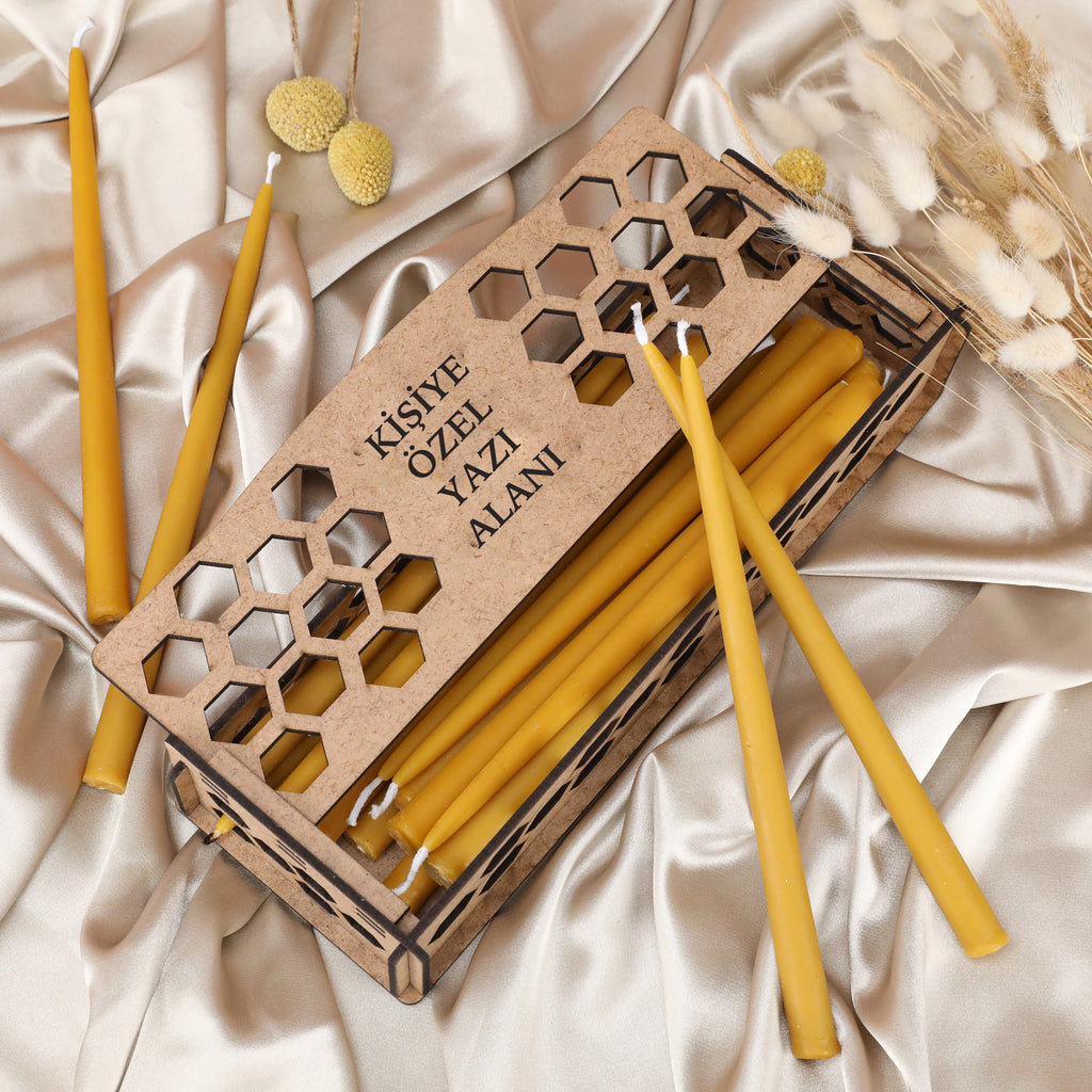 Ahşap Kutuda Kişiye Özel Bal Mumu Seti 23CM X 2...