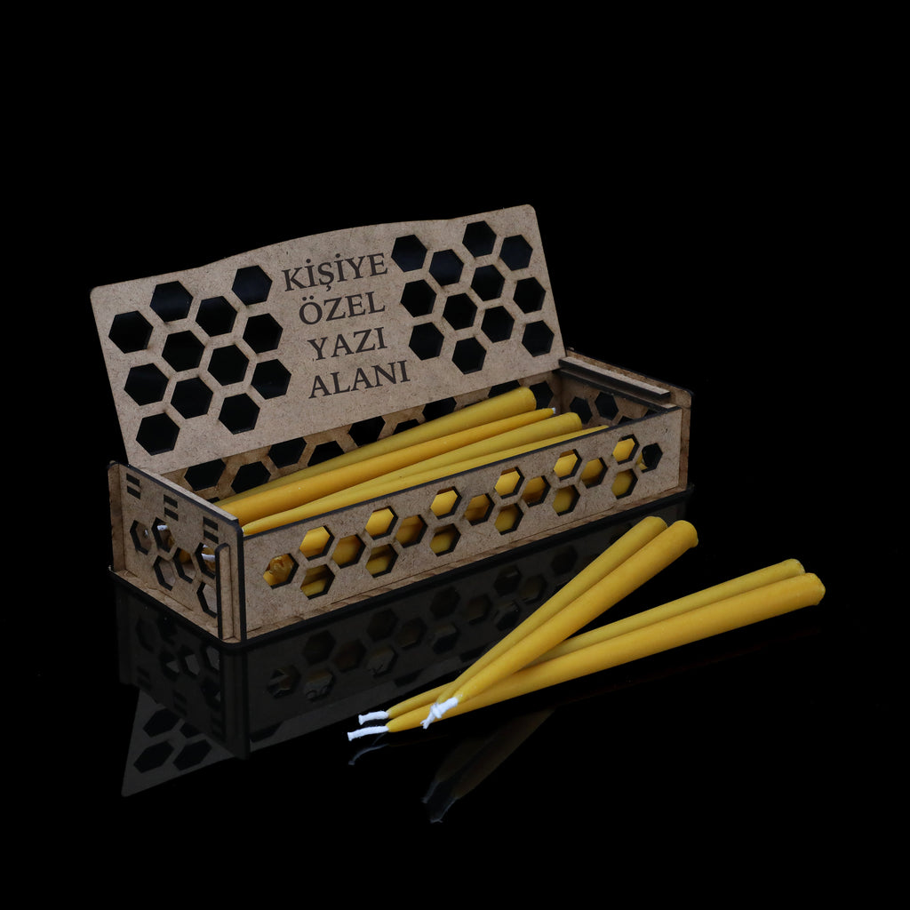 • Özel Tasarım Ahşap Kutu İçinde El Yapımı Bal Mumu Seti